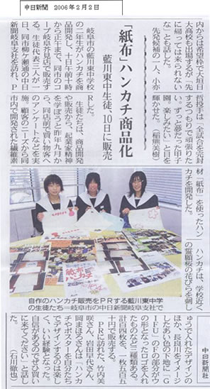 経済産業省より委託を受け、中学校で起業家教育実施。地場産業として新しい素材の紙布を使ってハンカチを扱う商品にした。
