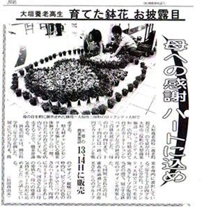 母の日に、みんなで育てたカーネーションを商品にした。ミニメッセージカードをつけて販売した。
