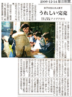 和菓子を考えて商品にした。「ゆきだるまもち」の宣伝活動で模擬株式会社の社長と副社長が新聞社に出向きアピールした。