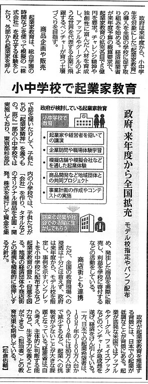 杉並第四小学校の起業家教育の活動が紹介されました。